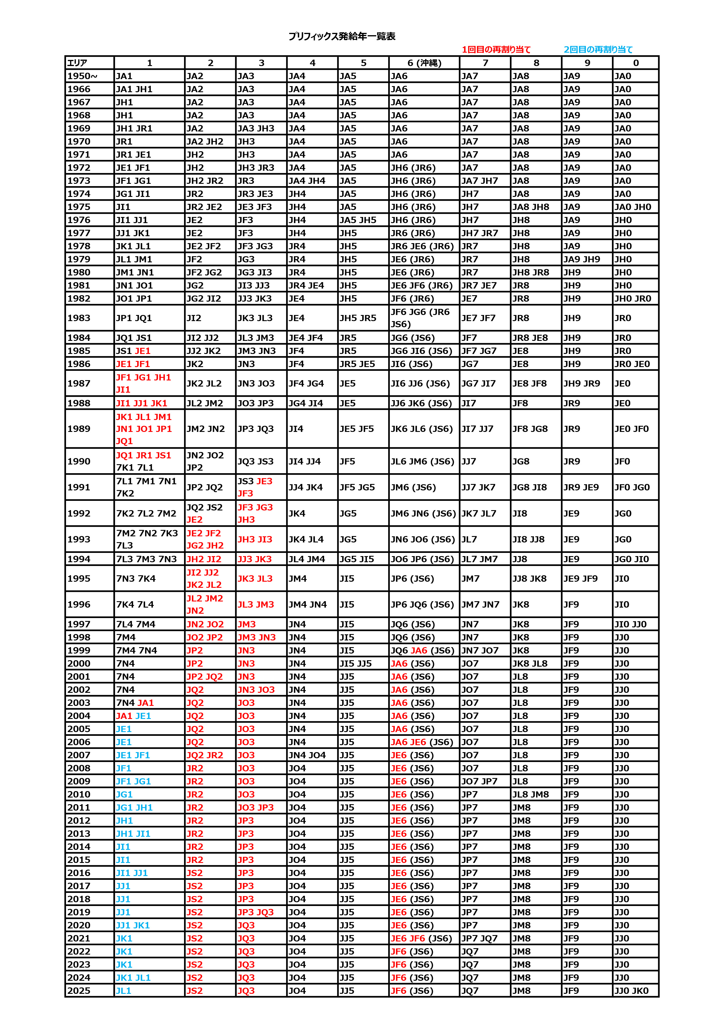 プリフィックス発給年一覧表 (更新)