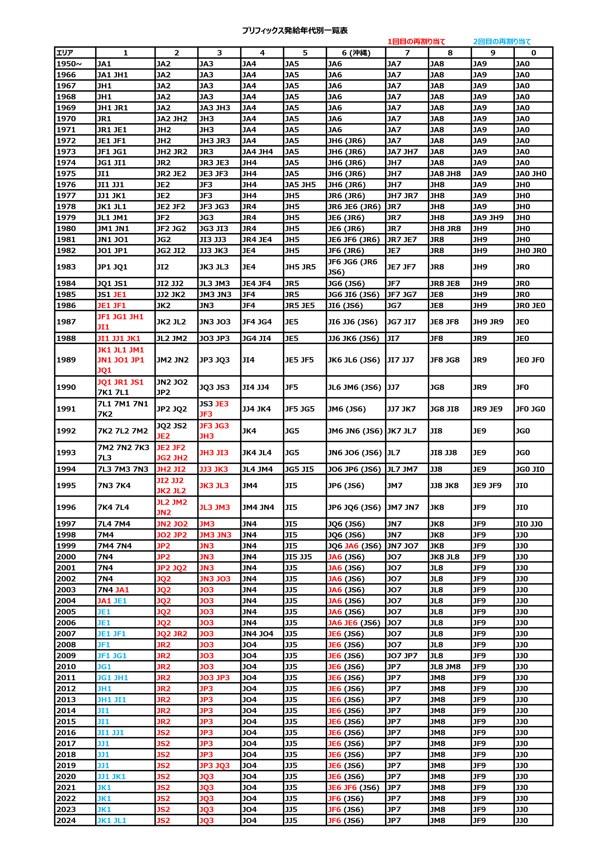 プリフィックス発給年一覧表 (更新)